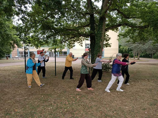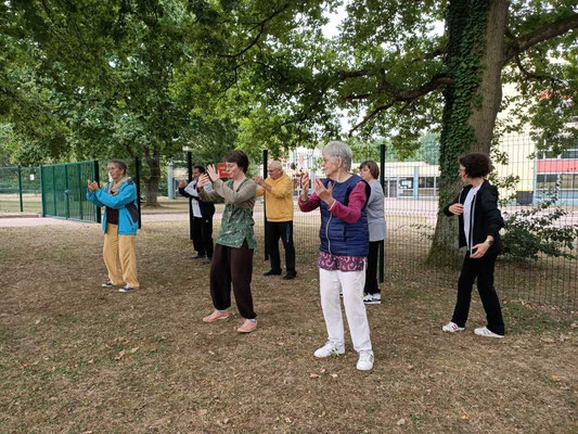 Comme l'an dernier, ce sont les pratiquants de Qi Gong qui ont inauguré les rencontres estivales de l'association, ce mardi 26 juin au matin sur la pelouse de la maison de quartier de Saint-Michel!