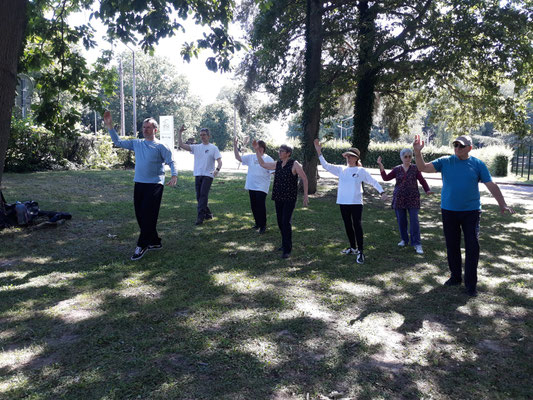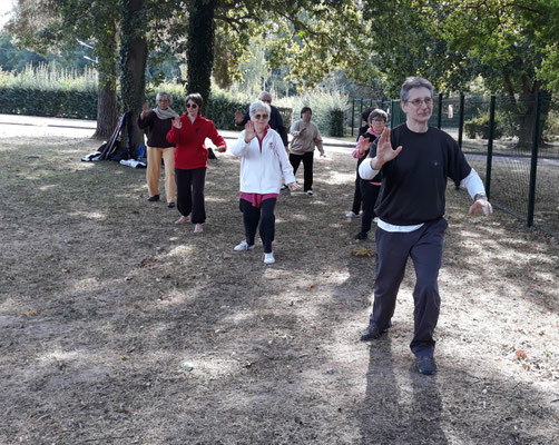 Les pratiquants de Tai Ji Quan quand à eux ont préféré se retrouver semaine après semaine le samedi matin sous les chênes qui bordent la rue du docteur Michel Baudoux, en face de l’École des infirmières... et l'ambiance était tout aussi joyeuse!